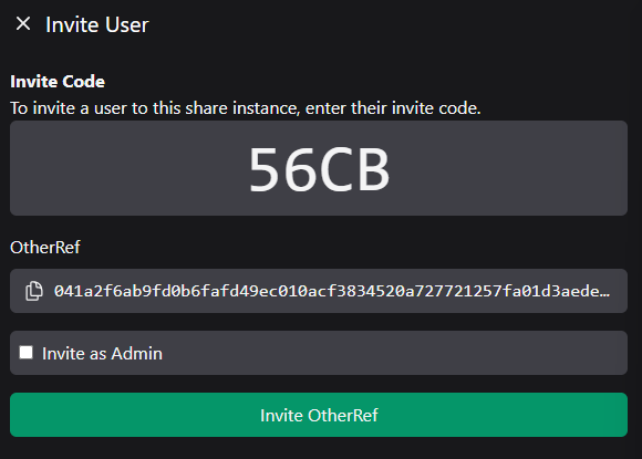 - سيقوم المستخدم الأساسي بعد ذلك بإدخال هذا الرمز في واجهة "دعوة" على جهازه الخاص وتحديد "دعوة [اسم المستخدم]". لمنح هذا المستخدم الإضافي حقوق المسؤول (إضافة وحذف مستخدمين آخرين في المثيل)، يمكنه أيضًا تحديد "دعوة كمسؤول".