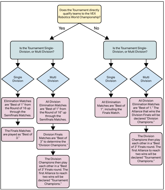 VEX IQ机器人大赛根据预设的总决赛联盟数量自动创建联盟。 排名第一的队伍与排名第二的队伍配对,排名第三的队伍与排名第四的队伍配对,依此类推,直到达到总决赛联盟人数。 每个联盟都会进行一场决赛来决出获胜联盟。