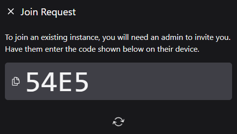 - 每個額外的用戶都應選擇“加入現有用戶”,這將產生一個臨時的 4 位字母數字代碼。 如果代碼過期,他們可以關閉視窗並再次選擇“加入現有”以獲取新代碼。